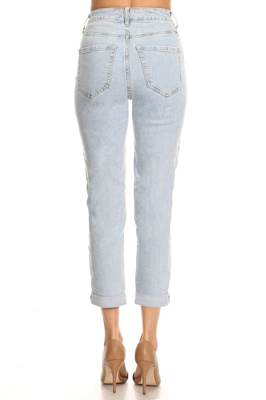 Stretch Mom Jeans de Tiro Alto con Dobladillo Tipo Capri