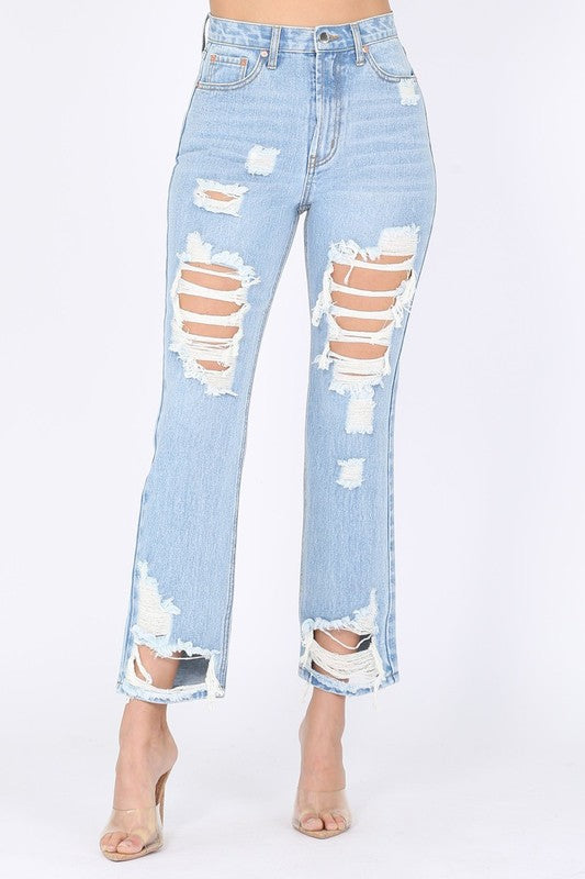 Jeans Straight Leg de Mezclilla Rígida en Azul Claro