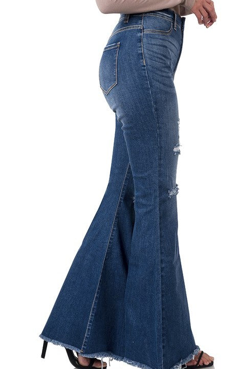 Pantalón acampanado de mezclilla con tiro alto y desgaste