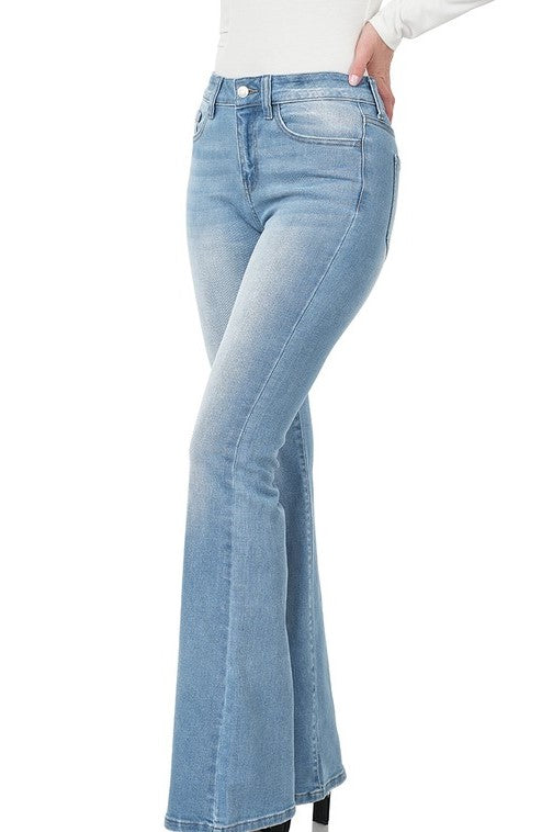 Pantalón boot cut de mezclilla stretch y tiro medio